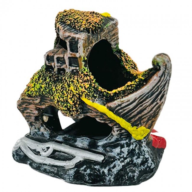 Ornamento para aquário - Barco Ruína decorado