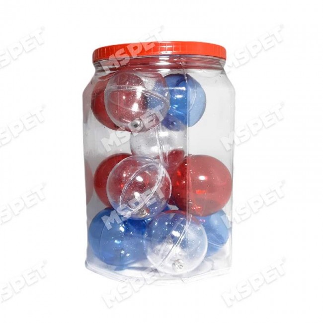 Pote bola para gato em acrílico com guizo.Pote com 12 unidades.