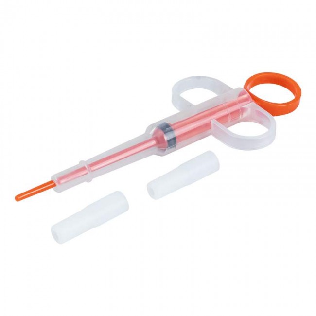 O Aplicador de Comprimidos é uma seringa especial que possui uma ponta flexível para facilitar a introdução do medicamento na garganta de seu pet.