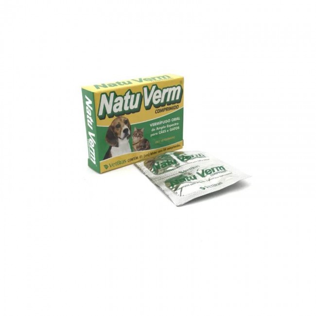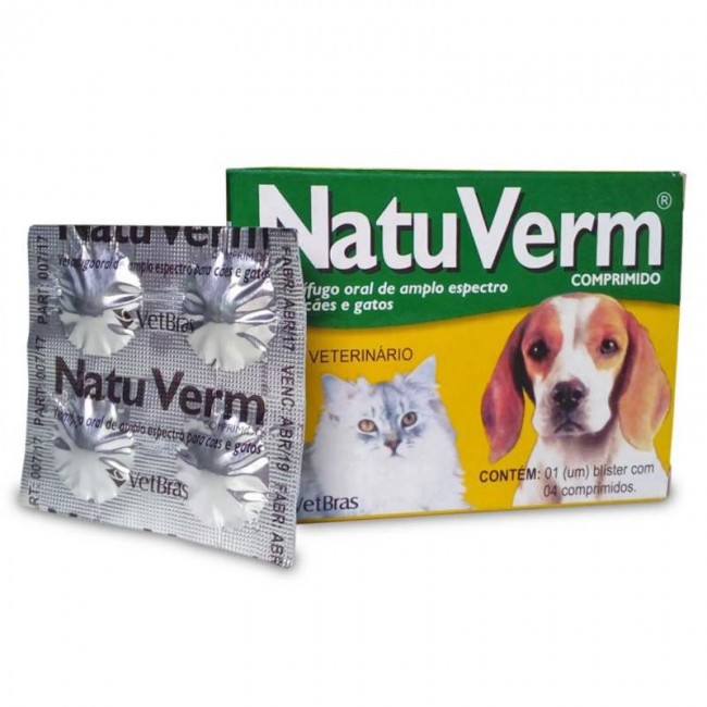NatuVerm Comprimido é um vermífugo de amplo espectro de ação (ovicida, larvicida, formas adultas) composto de pamoato de pirantel e praziquantel, utilizado no combate aos nematódeos (vermes redondos) e cestódeos (vermes chatos ou tênias) que acometem cães e gatos.