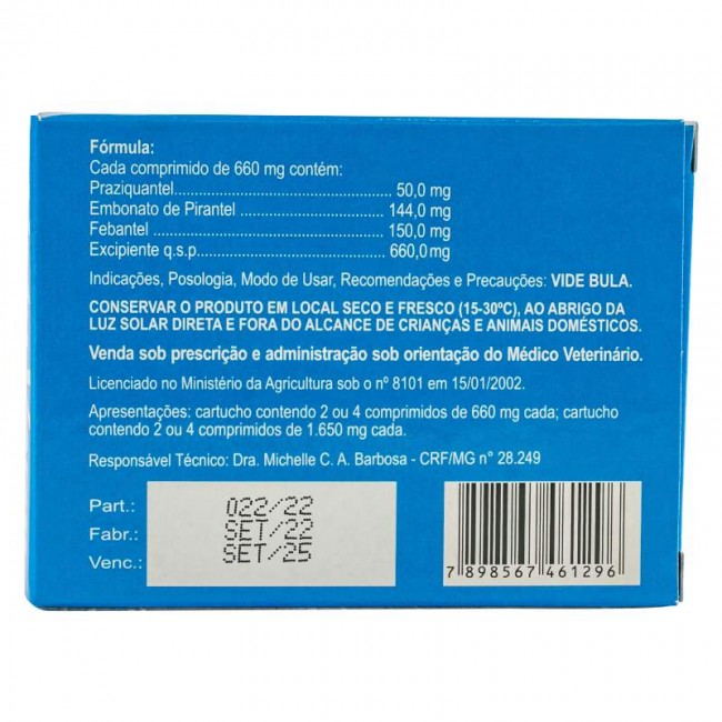 1 comprimido de 660mg trata um pet com porte de 10kg