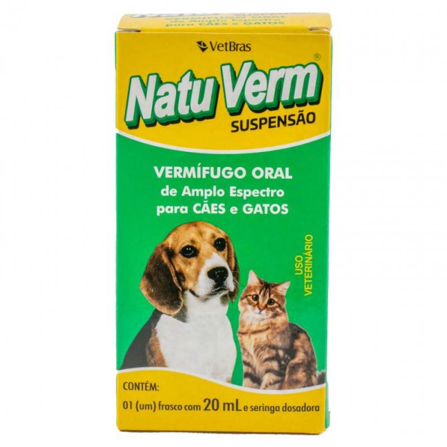 Natu Verm Suspensão é um vermífugo de amplo espectro de ação, indicado no combate de nematódeos e cestódeos em cães e gatos.