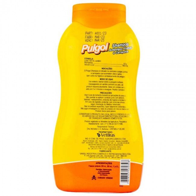 PULGOL SHAMPOO pode ser utilizado em cães e gatos. PULGOL SHAMPOO é indicado no