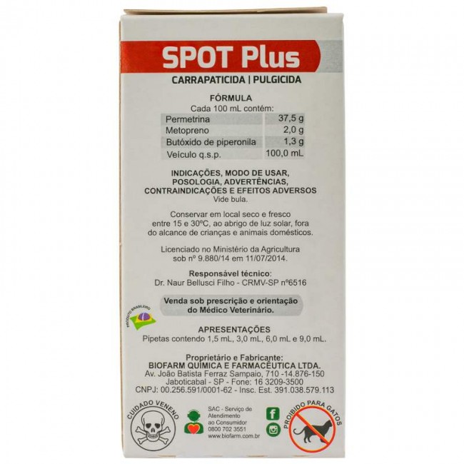 SPOT Plus é bastante baixa quando comparada a outros ectoparasiticidas. Em caso