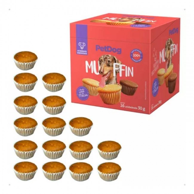 Display PetDog de Bolo Muffin sabor Chocolate, Laranja e Coco o petisco que falta no seu Pet Macios como os bolos feitos em casa, mas saborosos e saudáveis para os animais de estimação.