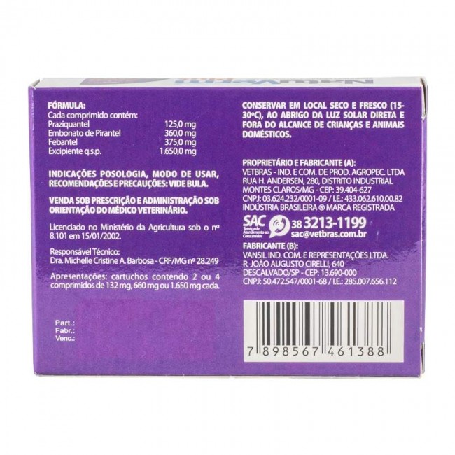Vermífugo oral de amplo aspectro para cães e gatos.